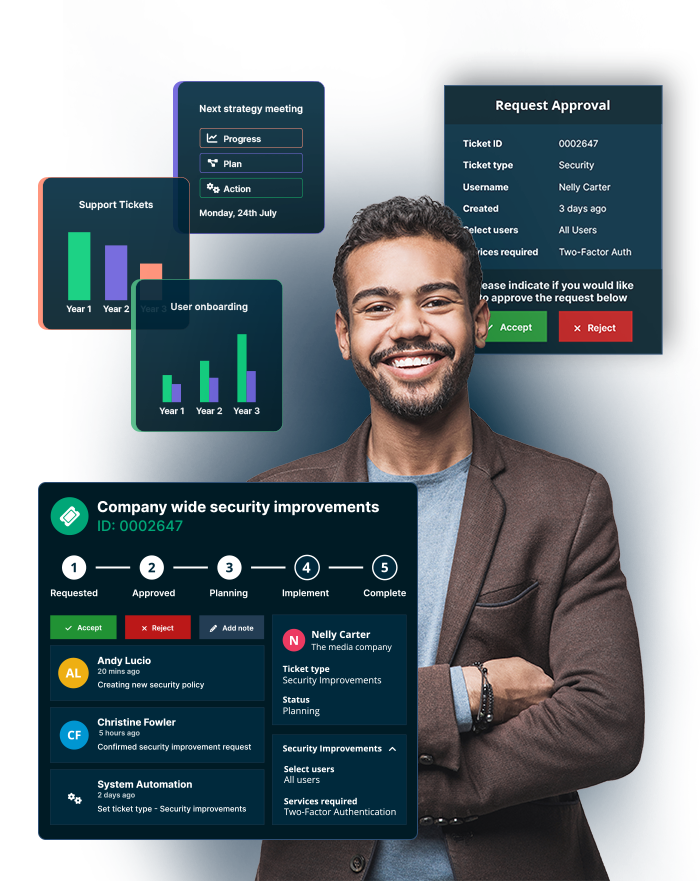 We partner with businesses, delivering IT services that go way beyond traditional support. Working with your team, we'll help you build a strategy that supports your business objectives, and then deliver it.